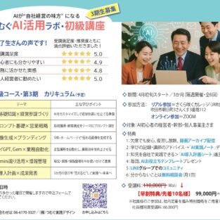 AIを「経営の味方」にする3か月 つむぐAI活用ラボ・初級コース 締切間近!